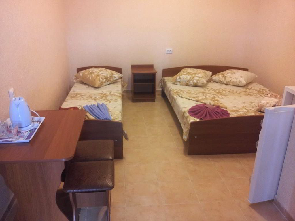 2-3-х местные номера расположены на 3-м этаже! Площадь данных номеров составляет 18 кв.м. Туалет и душ в номере, холодильник, телевизор, электрический чайник, кровать , тумбочка, вешалка с зеркалом, стол и стулья в номере. Нет террасы.