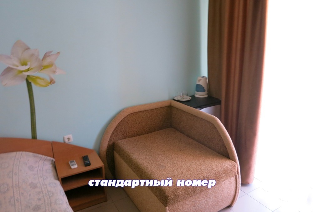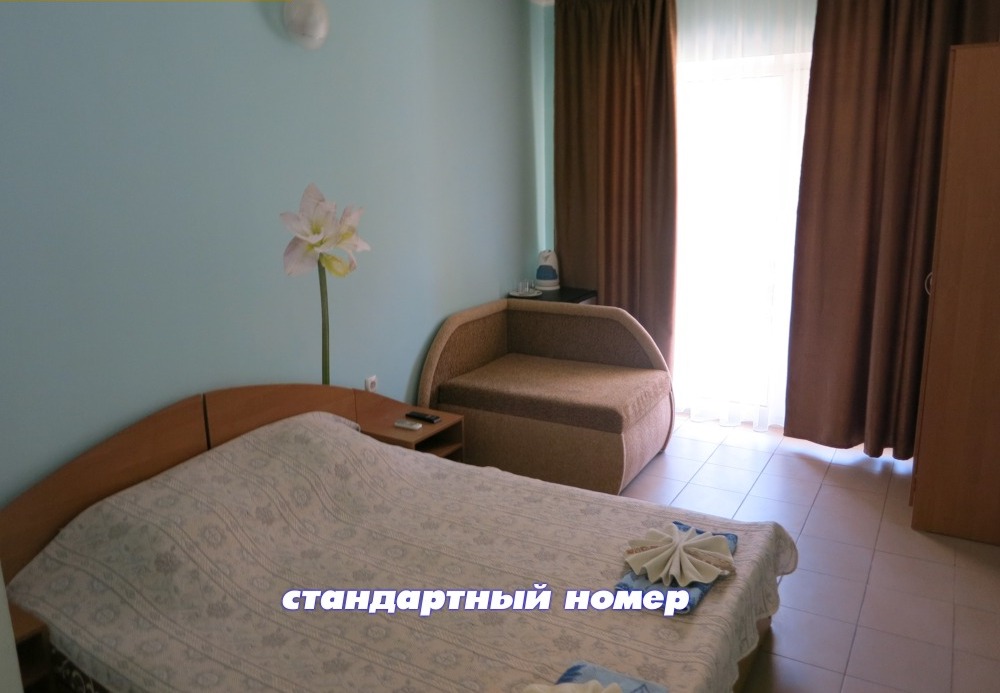- СТАНДАРТ: номера с боковым видом на море со всеми удобствами и кондиционером для 2-х или 3-х человек. В каждом номере двуспальная кровать (или 2 односпальных кровати), диван (или кресло кровать) с полноценными спальными местами.