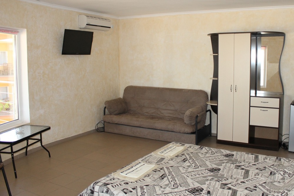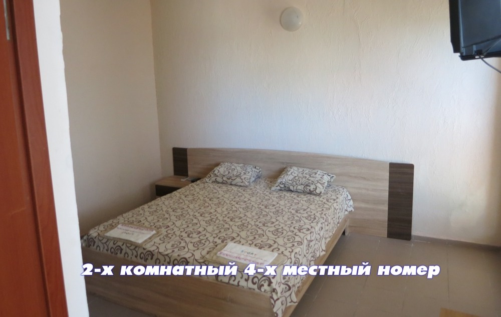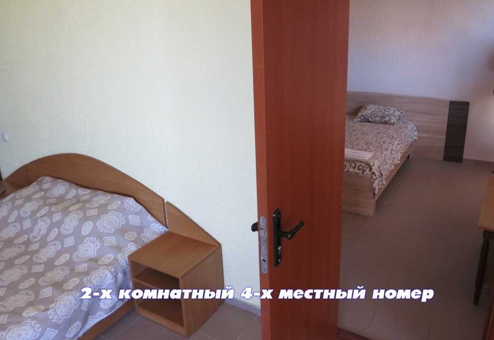 - ЛЮКС: номера повышенной комфортности с панорамным видом на море. Номер состоит из 2-х комнат для 4-6 человек со всеми удобствами и кондиционером. В каждой комнате двуспальная кровать (или 2 односпальных кровати), диван (или кресло кровать) с полноценными спальными местами.