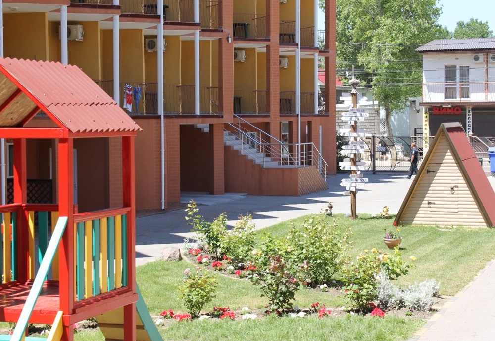 Территория отеля Парус в Затоке оригинально оформлена: газоны, арт-инсталляции, места для отдыха, а главное - выход прямо к Черному морю с его великолепным золотистым пляжем.